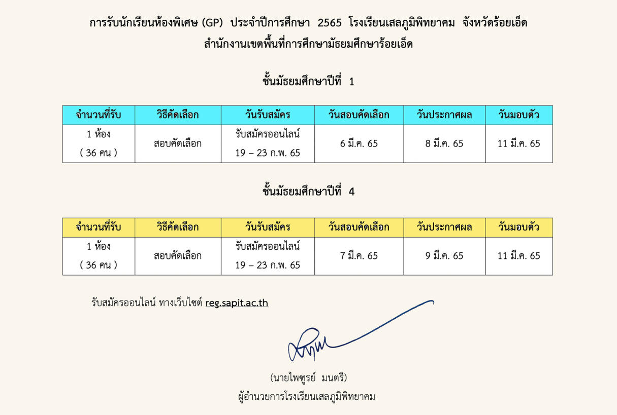 *** หากนักเรียนคนใดไม่มามอบตัวตามวัน เวลา และสถานที่ที่กำหนดจะถือว่าสละสิทธิ์