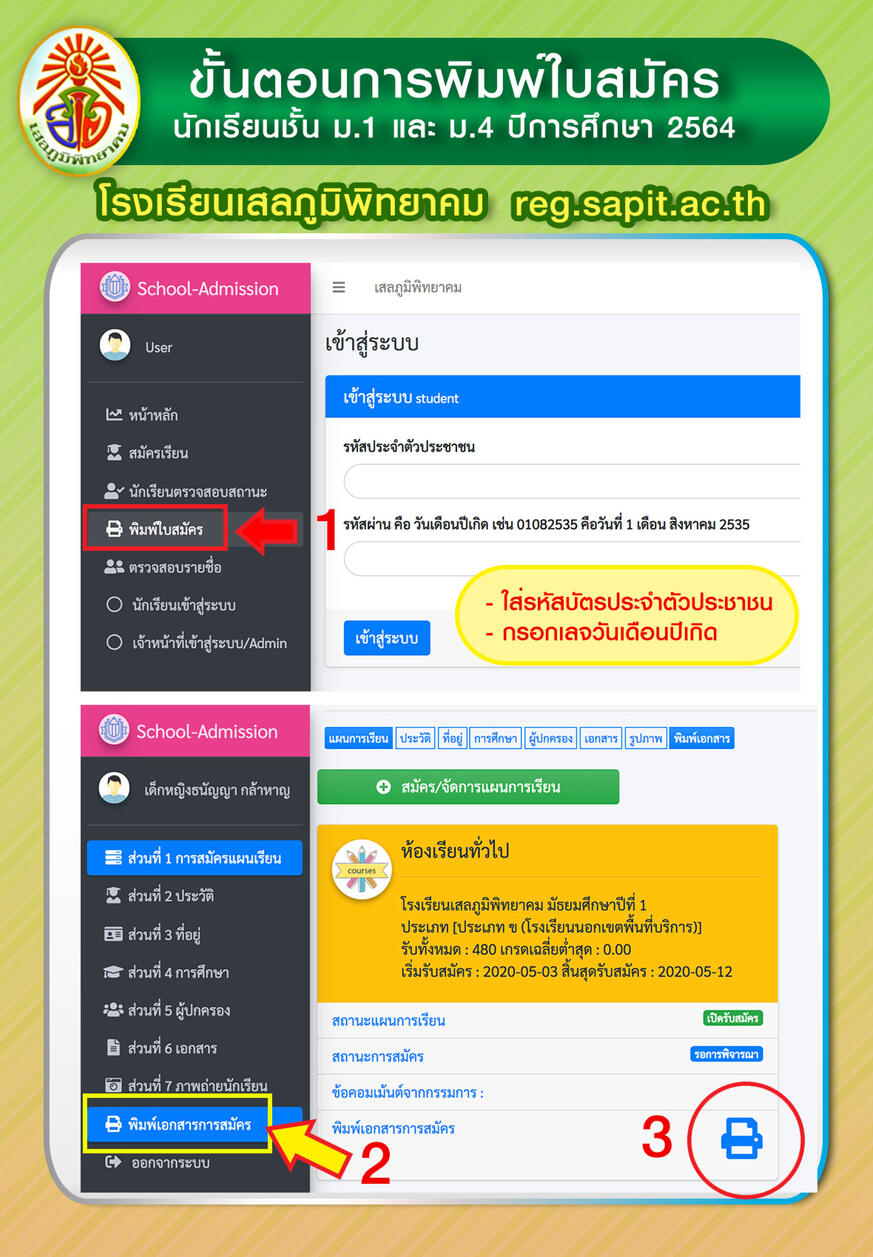 1. รับสมัครออนไลน์ https://reg.sapit.ac.th