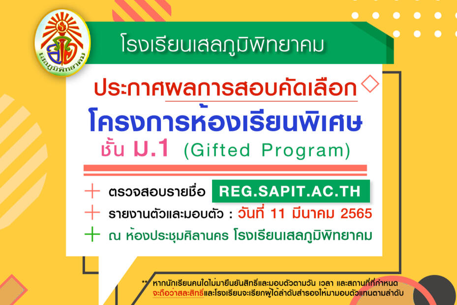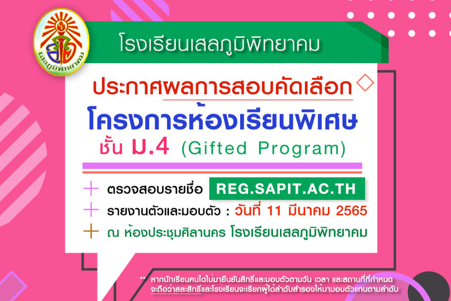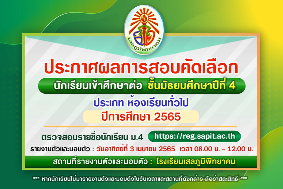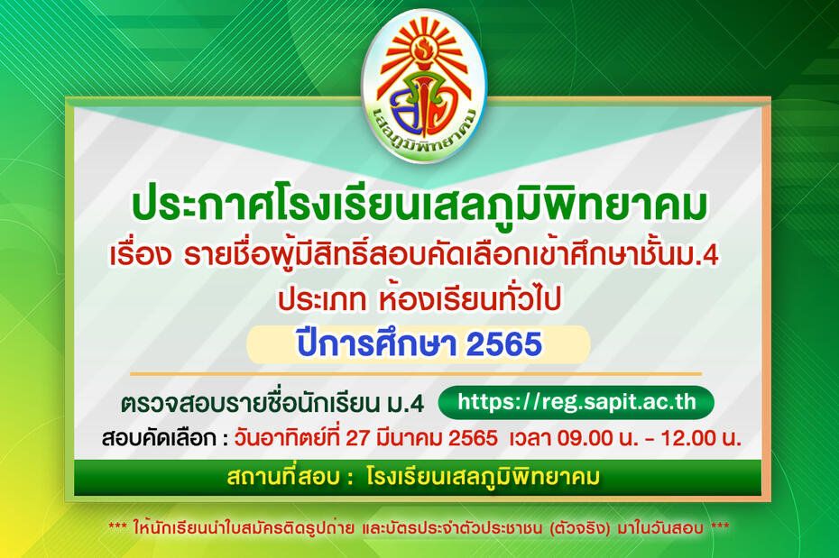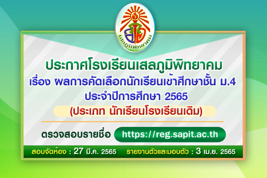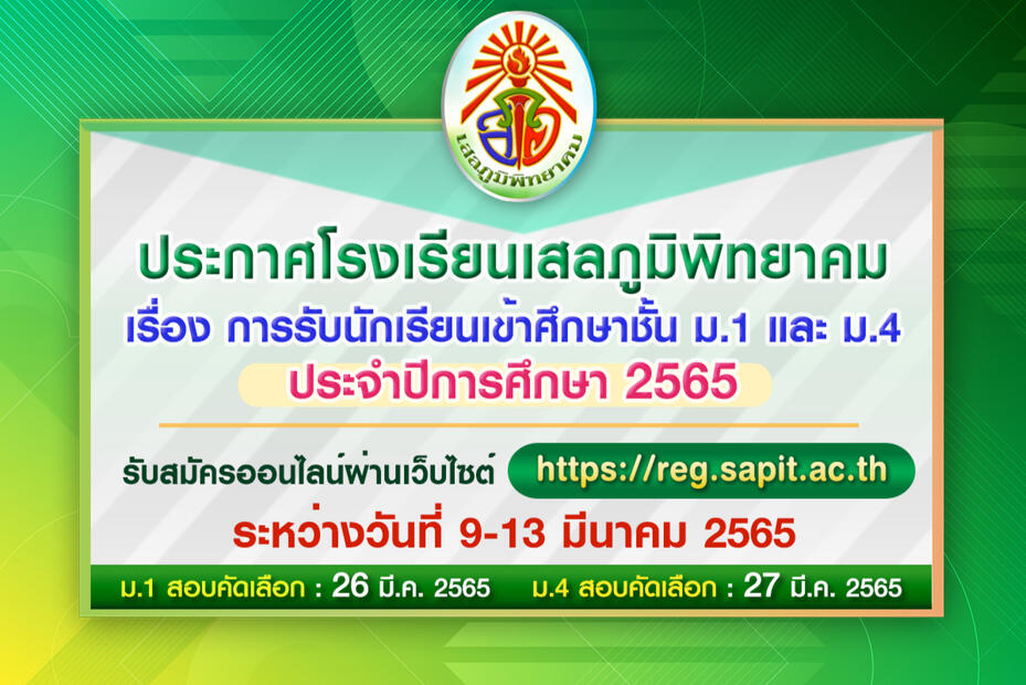 เว็บไซต์โรงเรียนเสลภูมิพิทยาคม : reg.sapit.ac.th