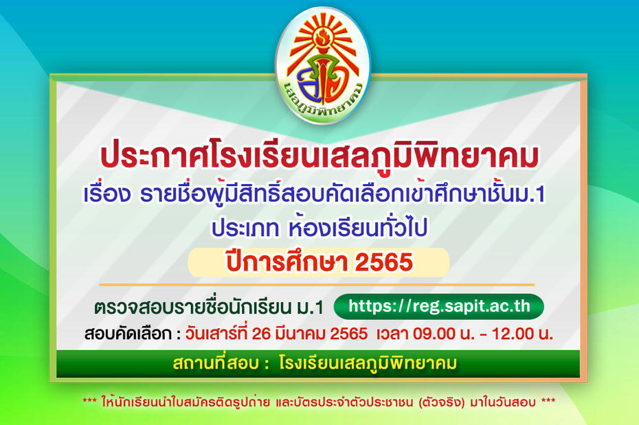 ปีการศึกษา 2565 โรงเรียนเสลภูมิพิทยาคม