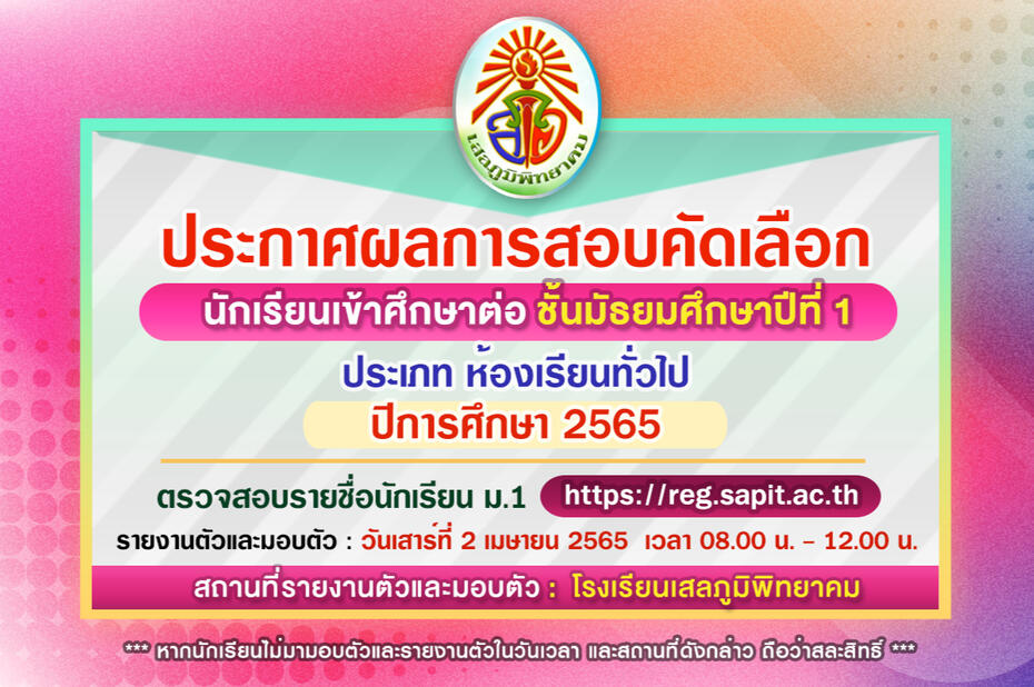 เว็บไซต์โรงเรียนเสลภูมิพิทยาคม : reg.sapit.ac.th